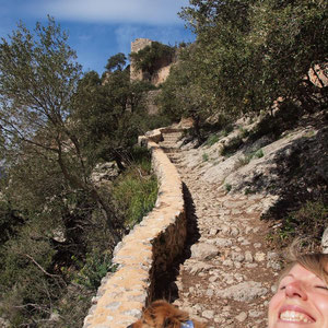 Auf Mallorca leben und noch nie da gewesen????? Das kann nicht sein! Auf nach Alaro! Und zwar mit unserem Gefährt! Die Geländetauglichkeit muss ja schließlich getestet werden…alle eingestiegen…Familienausflug…der Chef, die Freundin, die Schwester und der Novio und natürlich unser Pelztiger! Die wilde Fahrt kann losgehen!