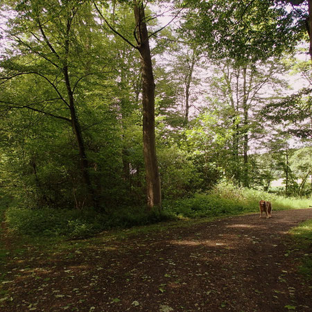 Deswegen wird mehrmals täglich in den Wald gegangen! Baschkhan wird von Jan fit gemacht! Es wird auf der Pirsch gelegen, Ausschau gehalten nach wilden Tieren. Dies alles muss für die Wildnis Schwedens trainiert werden.